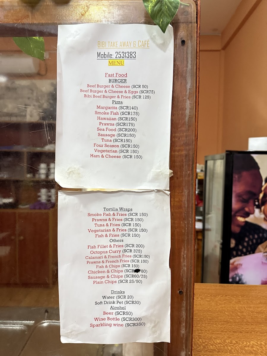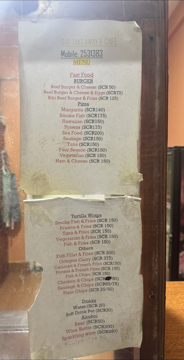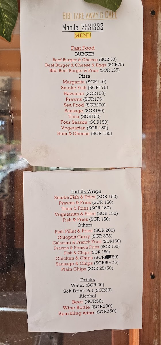 From a reviewer’s perspective, the menu at Bibi Take Away & Cafe in Anse Boileau, Victoria presents a well-rounded selection that reflects both local flavors and familiar comfort food, making it appealing to a wide range of diners. The seafood choices stand out strongly, with Grilled Fish highlighting freshness and simplicity, while Pizza Frutti Di Mare adds a richer, more indulgent option for those craving a mix of seafood and classic Italian style. For lovers of hearty meals, Beef Curry, Beef Stew and Stir Fied Chicken, and the convenient Beef Stew and Stir Fied Chicken Togo Box deliver satisfying depth and warmth, ideal for a filling lunch or dinner. Casual favorites are also well represented, with Meat Balls offering a comforting bite and Burger & Fish and Chips catering to those looking for something familiar and easy to enjoy. The menu does not overlook lighter or more portable options either, as Vegetarian Wrap with French Fries and Tuna Wraps provide balanced alternatives that still feel complete. Overall, the menu feels thoughtfully composed, balancing seafood, meat-based dishes, and vegetarian choices in a way that reflects everyday dining needs while maintaining a distinct local character.